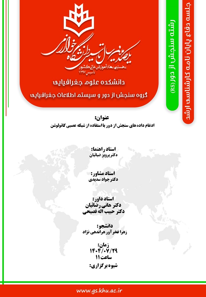 جلسه دفاع کارشناسی ارشد خانم زهرا فخرآور هراندهی نژاد ادغام داده های سنجش از دور با استفاده از شبکه عصبی کانولوشن